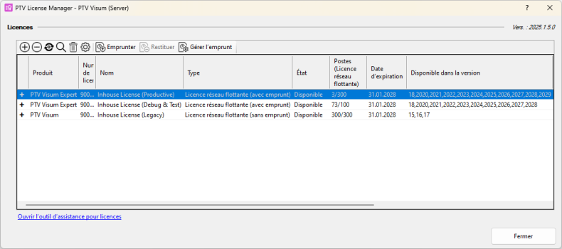 La fenêtre Gérer l’emprunt de licence s’ouvre.