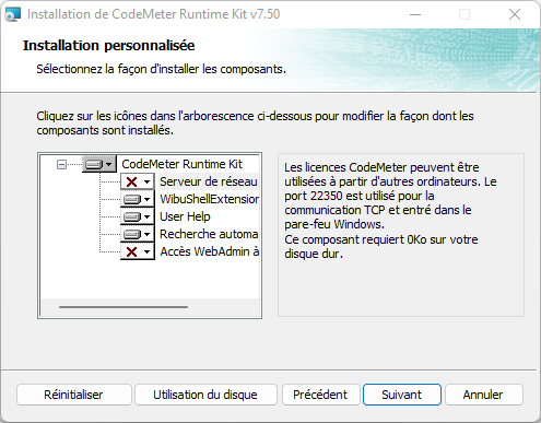 L’environnement CodeMeter Runtime requis est installé au courant de l’installation et configuré pour l’utilisation comme serveur de licences.