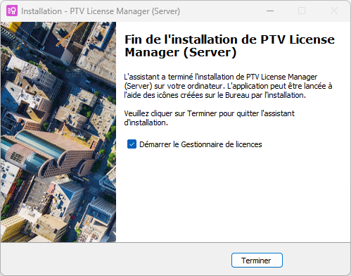 Pour l’activation d’une licence réseau flottante sur un serveur, utilisez le gestionnaire de licences indépendant des produits PTV Vision PTV License Manager (Server) (à télécharger depuis notre page web : PTV Vision Setups).