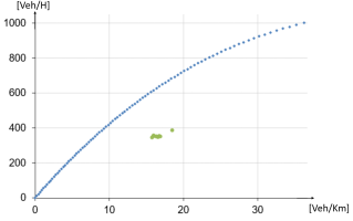 In such cases, TRE produces forecast traffic state points not belonging to the diagram (inconsistent traffic states), as shown through the set of green points in the figure: