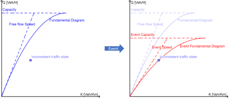 The slope of the FD changes (red curve); the previous inconsistent traffic state belong to the new Event Fundamental Diagram curve.