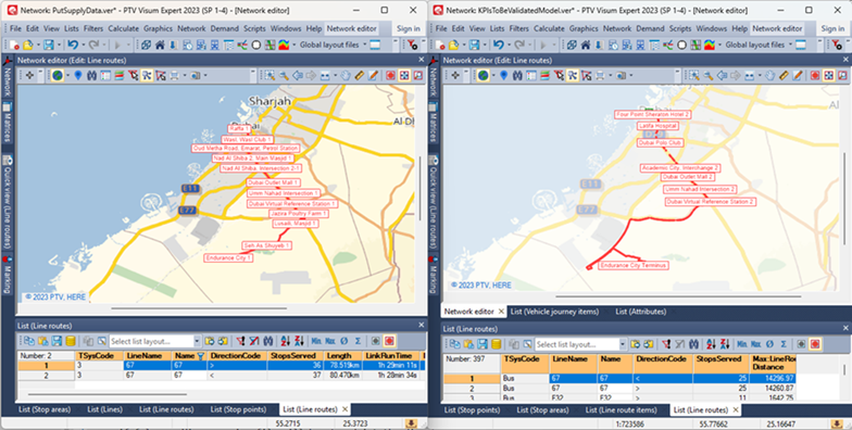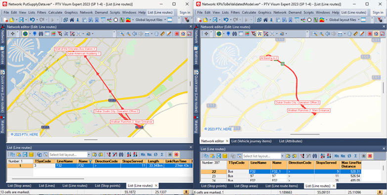 The validation can be performed opening both the Visum Model containing the KPI and the GTFS Model.