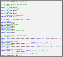 To insert and to analyze scenarios in the simulation, you need to populate several tables: