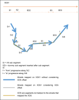 To each street touched by the subsegment (real or dummy) is assigned the subsegment speed and a reliability value computed as: