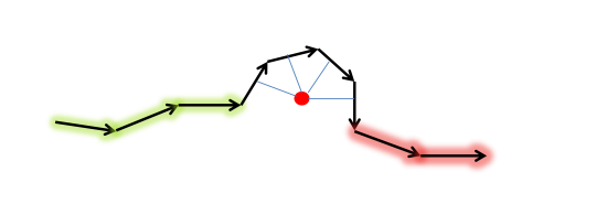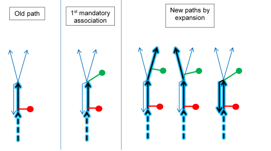 - Expansion strategy 1: If the last GPS point is associated near the end of the last street of the previous path, for each arc of the forward star of this last street a new path is created.