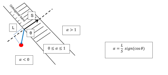 The following figure illustrates the GPS foot projection: S is the length of the street. L is the length of the projection of the vector (blue arrow) connecting the From node of the street and the GPS point. θ is the angle between the street and the vector.