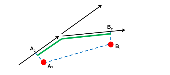 where L(P,Q) is the distance of the polyline connecting points A2 and B2.