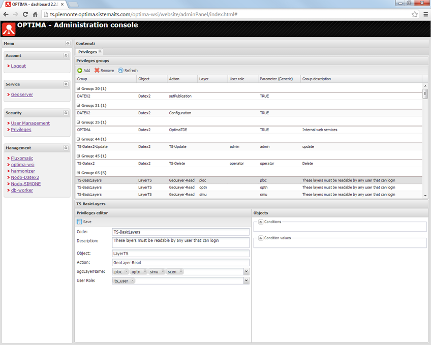 Represents the layers exposed to the Traffic Supervisor interface and accessible separately via WFS and WMS requests.