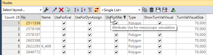 The PTV Vissim nodes which are relevant for PTV Optima Micro are only “dynamic assignment nodes”(nodes flagged as Use for dynamic assignment).