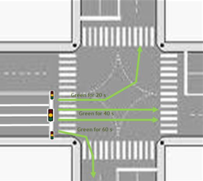 - There is one signal light for the left maneuver with a green light for 20 seconds per cycle.
