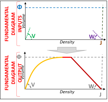 Potentially, each link of the model can have a different fundamental diagram due to the variations of the 4 parameters. Two links have the same fundamental diagram only when they have the same parameters V, Φ, J, and W.