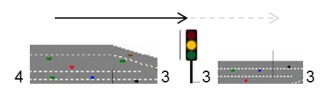 In cases where it is important to model the different capacities of each maneuver at the signalized intersections, you can extend the approach of modeling the effect of traffic signals on links. This approach uses only link and turn parameters. In this case, you can skip modeling the junction geometry and you can skip modeling signal controls.