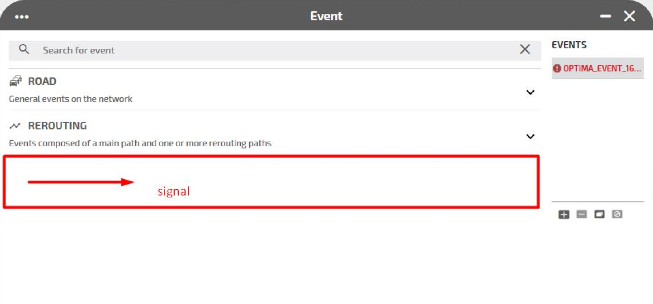 If the value signal is specified, a new accordion pane associated to the SIGNAL event type is shown in the GUI.