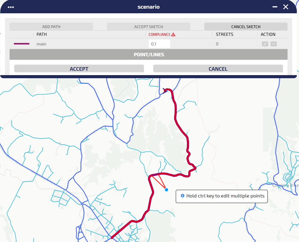 Tip: You can edit multiple points by simply holding the CTRL key. When the key is released, the path is recomputed and updated on the map.