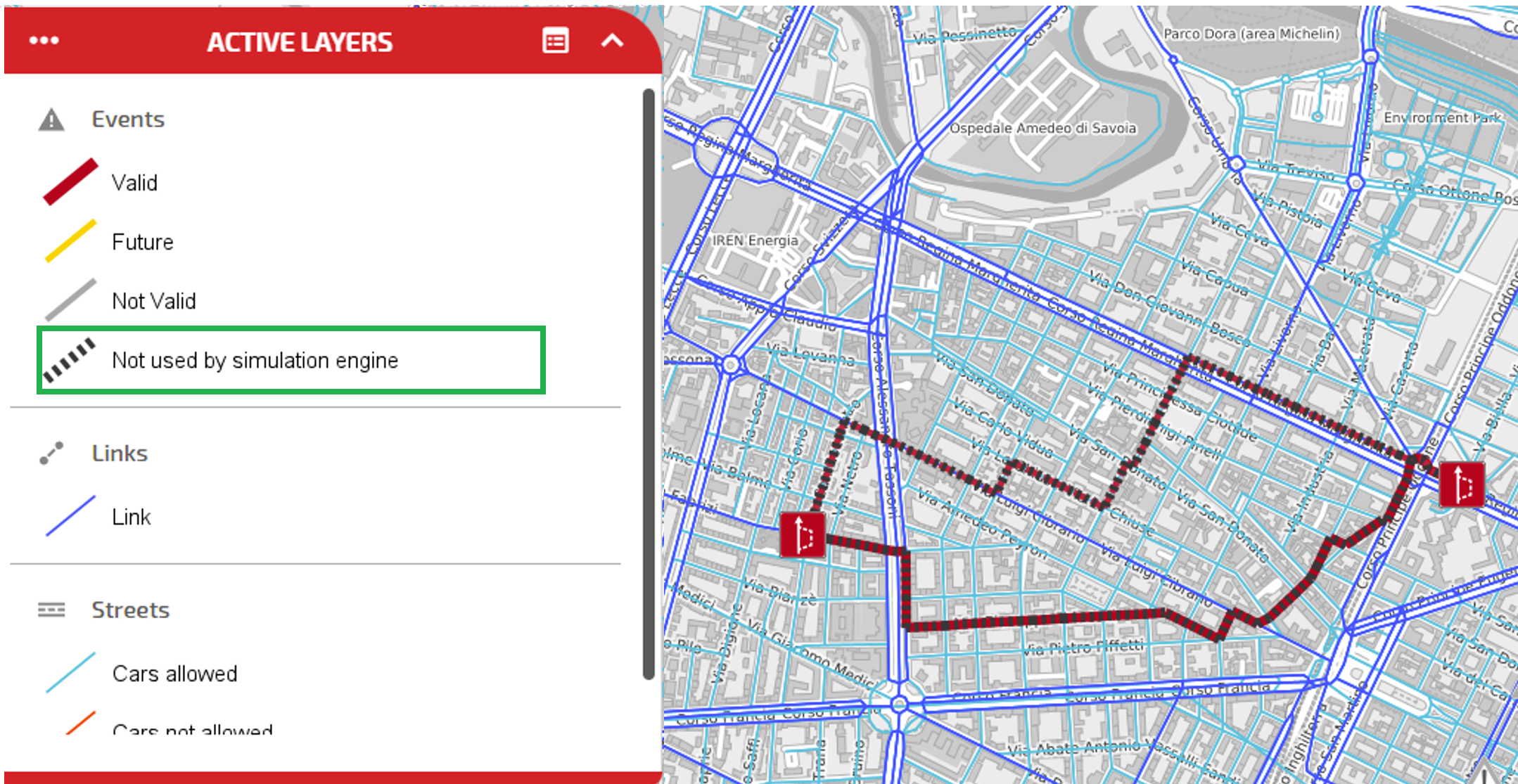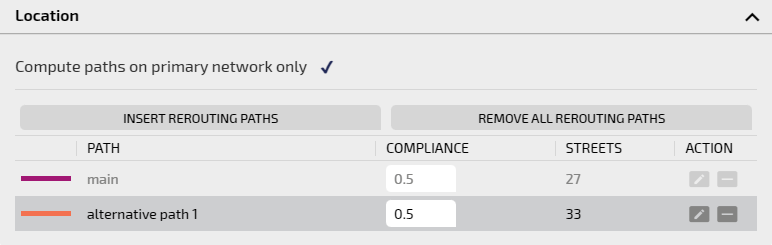 Important: If non-primary-network streets are added to the paths of a rerouting event, the simulation engine is not able to use such event in the computation.
