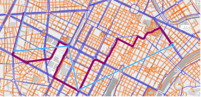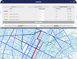 By just moving the mouse around the map window, the alternative path is automatically computed, trying to connect:
