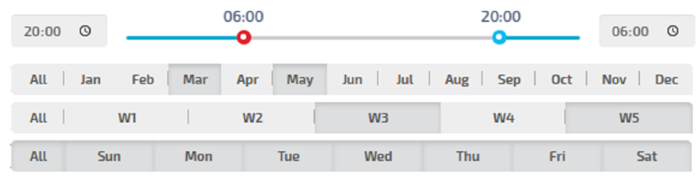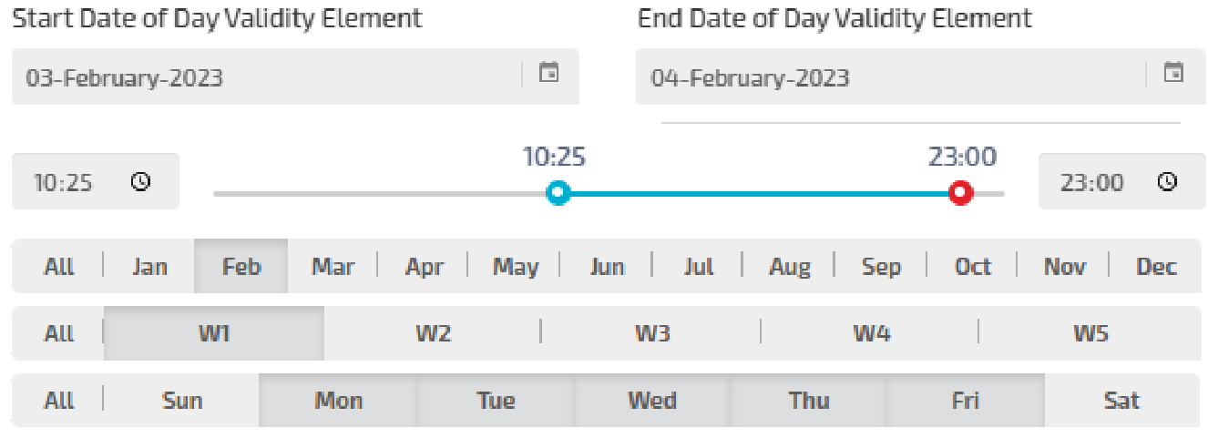 If you want to add a complex validity, you can drag the slider for setting the time interval. In the example, you can see a time interval starting from 5:00 to 18:00: