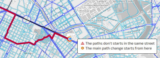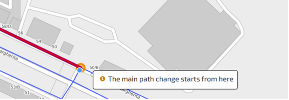 Tip: The start and the last path segment are indicated by an orange circle. A pop-up appears if the user hovers with the mouse on such circles.