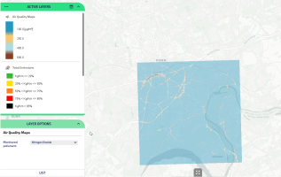 The layer legend will be updated each time a new pollutant is selected when using the Monitored pollutant layer option.