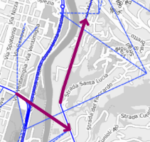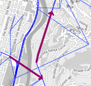 The line type (continuous or dashed) indicates if you are managing a link (an aggregation of streets, at least one street) or a connector (a virtual link). |