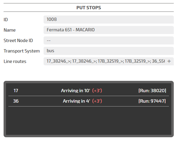 If you active the PuT Lines layer, you can see the stops associated with the public transport lines.