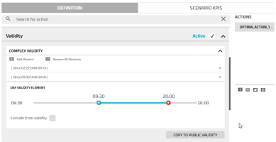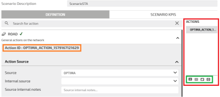 - A set of KPIs associated to every action, through the SCENARIO KPIS tab (see → Adding a KPI).