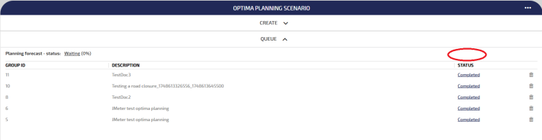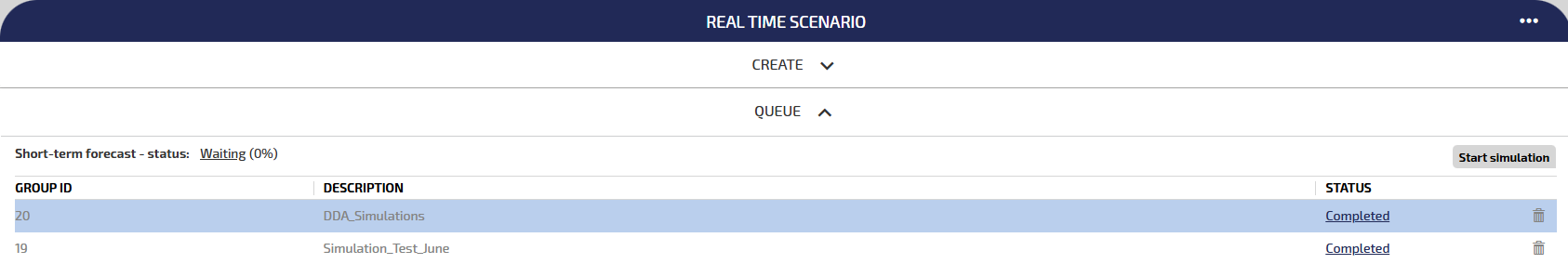 Important: The simulation groups listed are automatically run - after a configured time period - according to the queue of the simulation engine.