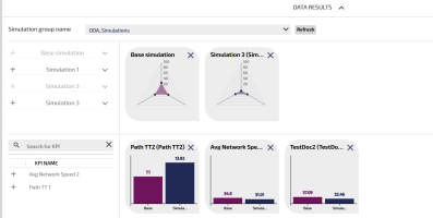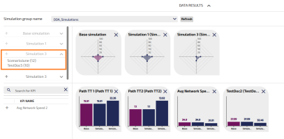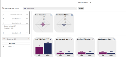 In particular, it shows a list of all already-simulated simulation groups, and for each one it allows the user to compare simulations and KPIs in order to check the differences between results.