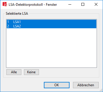 Das Fenster LSA-Detektorprotokoll - Fenster öffnet sich.