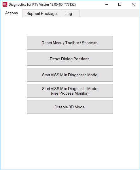 Das Fenster Diagnostics for Vissim 2020 öffnet sich. Standardmäßig wird das Register Actions angezeigt.