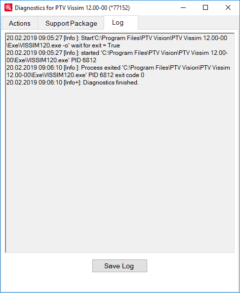 Der PTV Vision Support kann Sie bitten, in diesem Register eine Log-Datei zu erstellen.