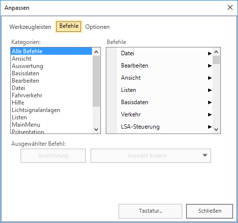 5. Wählen Sie in der zugehörigen Auswahlliste Befehle den gewünschten Eintrag.