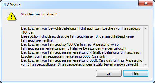 Wenn die Gewichtsverteilung Netzobjekten zugewiesen ist, öffnet sich das Fenster Gewichtsverteilung löschen.