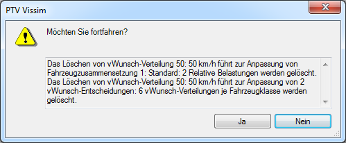 Wenn die Wunschgeschwindigkeitsverteilung Netzobjekten zugewiesen ist, öffnet sich das Fenster Wunschgeschwindigkeitsverteilung löschen.