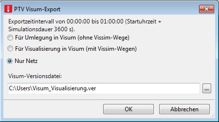 Das Fenster PTV Visum-Export öffnet sich.