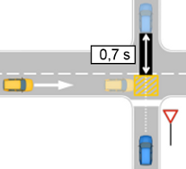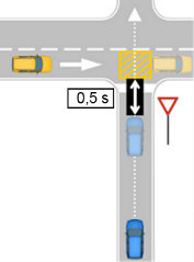 Blockieren des wartepflichtigen Stroms vermeiden: Wenn ein vorfahrtberechtigtes Fahrzeug im ausgewählten Prozentsatz liegt, prüft dieses Fahrzeug den Raum stromabwärts von der Konfliktfläche und befährt die Konfliktfläche unter folgenden Voraussetzungen nicht: