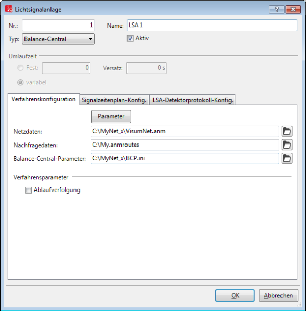 Ein Beispiel und englischsprachige Informationen zu Balance-Central finden Sie im Verzeichnis ..\Examples\Examples Training\Signal Control\UTC - Workflow PTV Balance PTV Epics.