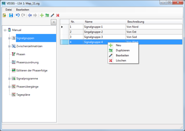 | Bearbeiten | Daten der ausgewählten Signalgruppe ändern |