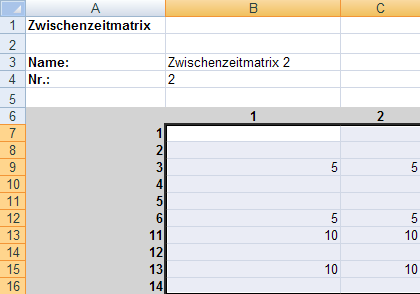 9. Öffnen Sie das Tabellenblatt der Zwischenzeitmatrix, aus der Sie die Daten entnehmen wollen.