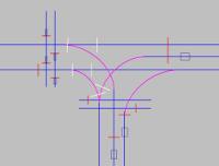 Drahtgitterdarstellung ausgeschaltet: Dreiarmiger Knotenpunkt mit zwei Fußgängerüberwegen |