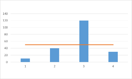 Die folgende Abbildung zeigt die im vorangegangenen Simulationslauf gemessenen Kosten. Weg 3 war mit Abstand der teuerste Weg, und auch der einzige Weg, welcher teurer als die mittleren Kosten war. Weg 2 lag am nächsten an den mittleren Kosten. Etwas billiger war Weg 4, und Weg 1 war der billigste.