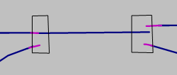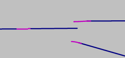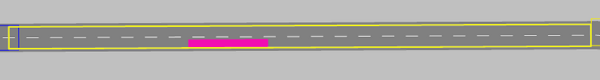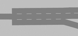 Wenn der Übergang von einer Strecke mit einem Fahrstreifen in eine Strecke mit zwei Fahrstreifen über zwei Verbindungsstrecken modelliert ist, müssen diese vollständig im Knoten liegen. |