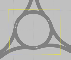 Hinweis: Die folgenden Hinweise für die Modellierung von Kreisverkehren beziehen sich auf Kreisverkehre mit geringer Komplexität, beispielsweise mit nur einem Fahrstreifen, ohne oder nur einem Bypass oder mit wenigen Einfahrten und Ausfahrten. Für komplexere Kreisverkehre oder Kreisverkehre, deren Konflikte mit der mesoskopischen Simulation nicht ausreichend zu einer korrekten Abbildung von Konflikten in der mesoskopischen Simulation führen, können Sie Ausschnitte definieren und eine Hybrid-Simulation durchführen (Hybrid-Simulation verwenden). |