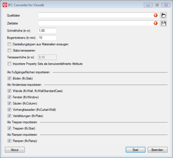 Das Fenster IFC Converter for Viswalk öffnet sich.