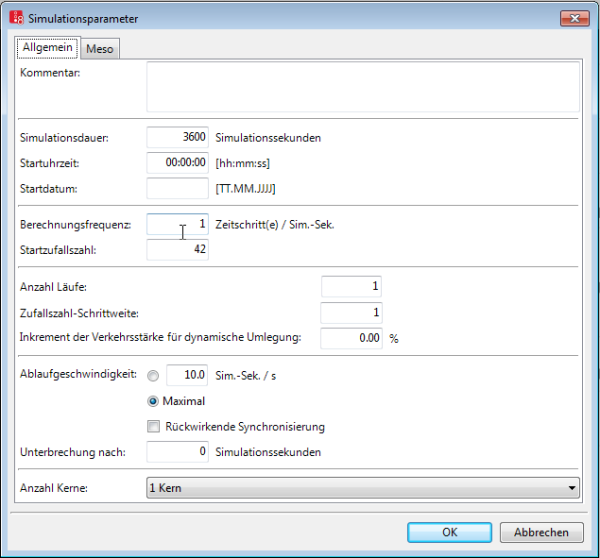Sie können für Ihre Simulation vor dem Start allgemeine Simulationsparameter setzen.