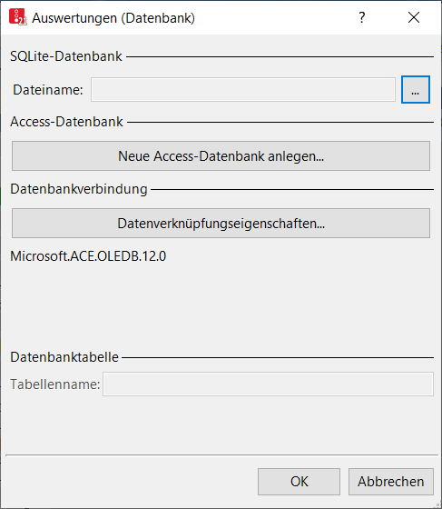 Dies ist ausschließlich dann notwendig, wenn Sie eine neue Access-Datenbank anlegen möchten. Dabei wird eine neue Datenbank im Microsoft-Access-Format *.mdb erzeugt. Wenn Sie eine gespeicherte Datei mit dem gleichen Namen auswählen, wird die Datei überschrieben.