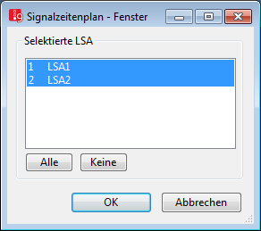alle definierten LSA auswählen. Für jede LSA wird die Auswertung in einem Fenster angezeigt. |