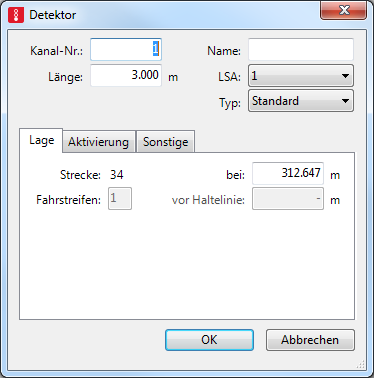 Länge des Erfassungsbereichs eines Detektors. Der Wert 0.000 ist zulässig und beispielsweise zur Modellierung von Fahrdrahtkontakten und Fußgängertastern sinnvoll. Diese werden im Netz als dünne Querstriche dargestellt. |