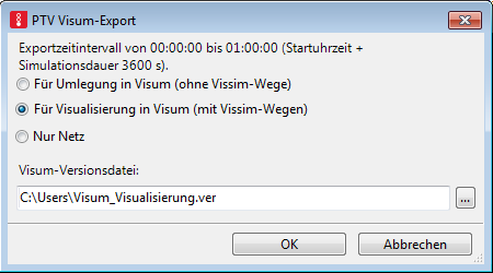 4. Wählen Sie die Option Für Visualisierung in Visum (mit Vissim-Wegen).