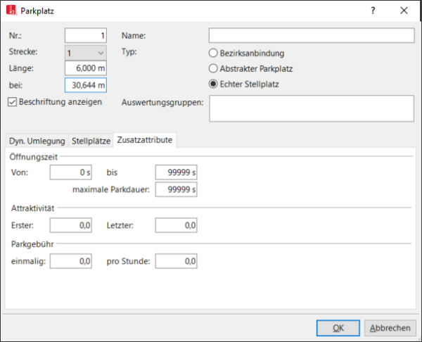 Diese Attribute sind nur relevant für Parkplätze der dynamischen Umlegung (Parkplätze für die dynamische Umlegung definieren).